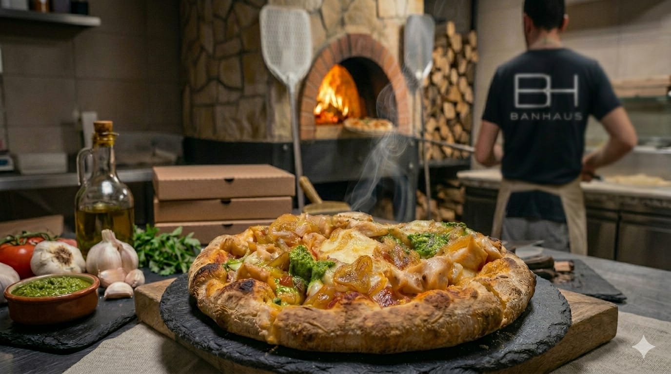 En Banhaus Pizzas elevamos la tradición italiana mediante una cuidadosa selección de ingredientes premium sobre una base artesanal de 25cm, horneada a la perfección.
